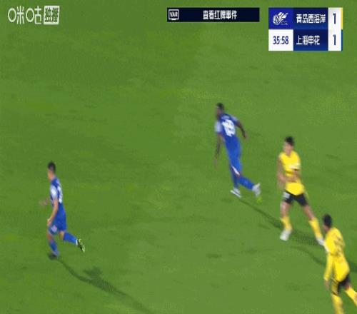 好在申花第19分钟就扳平比分,马纳法禁区内被何龙海放倒,主裁判经视频助理裁判提示后回看视频判罚点球,吴曦操刀命中将比分改写为1比1。