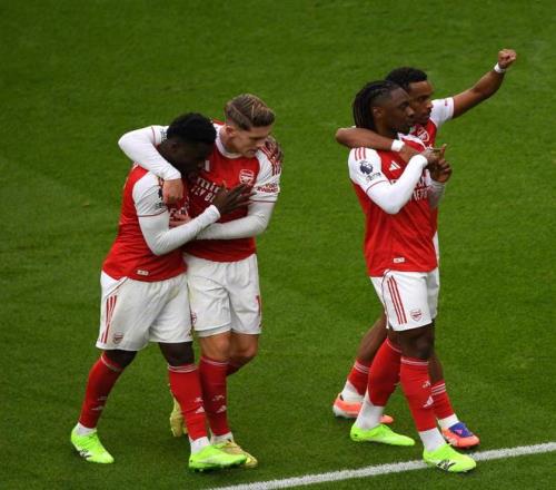 为了能够延续强势的发挥,阿尔特塔此役在主场没有丝毫保留,沿用了球队最熟悉的433阵型,首发门将拉亚,卡拉菲奥里、加布里埃尔、萨利巴和廷伯构筑后防,赖斯、苏维门迪和战旧主的埃泽坐镇中场,特罗萨德、约克雷斯和萨卡组成了进攻三叉戟。