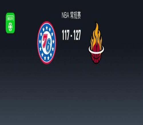第四节76人沃特福德拿下5分,热火哈克斯拿下8分,最终76人117-127不敌热火