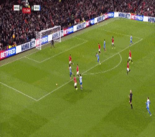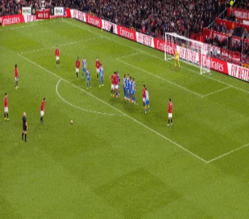 第41分钟,曼联前场任意球机会,B费一记贴地斩稍稍偏出立柱。